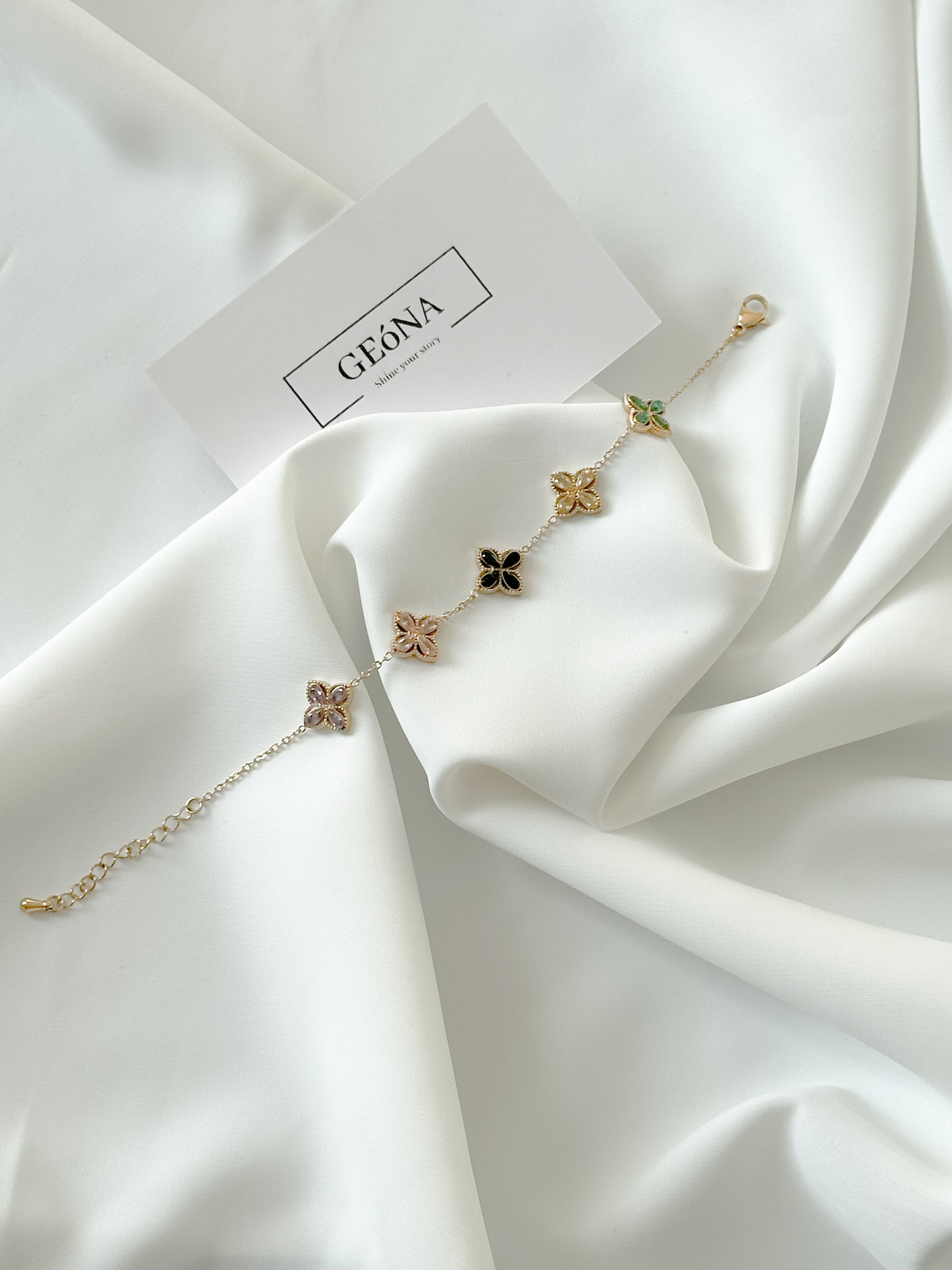 Golden Clover Blossom Bracelet – Five Vibrant Floral Hues